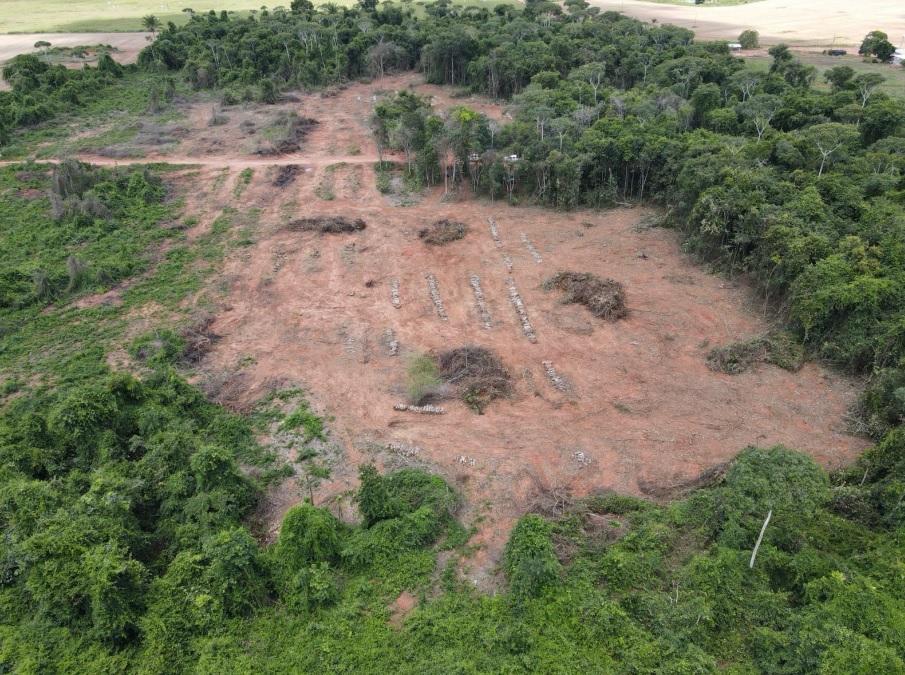 Durante um desdobramento da Operação Amazônia, as equipes receberam denúncias sobre desmatamento irregular na zona rural do município. No local, os policiais constataram uma área desmatada, onde tratores e motosserras estavam sendo utilizados para a produção ilegal de lenha.