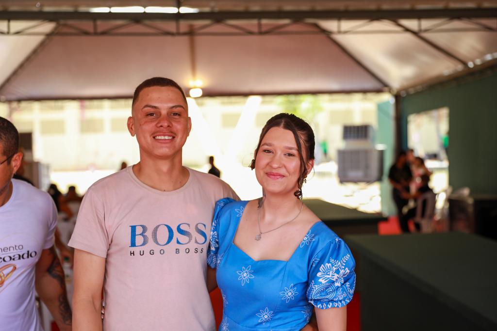 Também no Espaço da Beleza, a noiva Avila Cristine Lima Ferreira, de Barra do Garças, viveu intensamente cada detalhe da preparação ao lado do noivo, Andrey Gomes Vieira Júnior. O casal está junto há seis meses e se conheceram no trabalho.