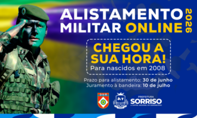 A Junta de Serviço Militar (JSM) de Sorriso lembra que o alistamento militar para jovens que completam 18 anos em 2026 deve ser feito até 30...