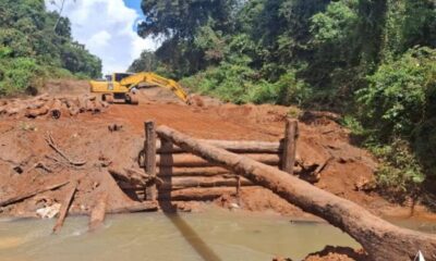 Equipes da Secretaria de Infraestrutura, Transporte e Saneamento (Sintra), seguem o trabalho de reconstrução de uma ponte na Estrada Carazinho, sobre o Ribeirão Sossego, nas proximidades...