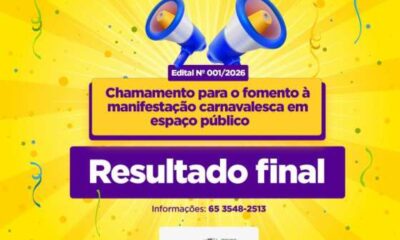 A Secretaria Municipal de Cultura e Turismo (SMCT) de Lucas do Rio Verde publicou, nesta sexta-feira (30), o resultado final do Edital de Seleção nº 001/2026,...