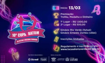 No mês das mulheres, o esporte também realiza um evento dedicado à classe feminina, a tradicional Copa Batom de Futsal e Voleibol Feminino 2026, que chega...